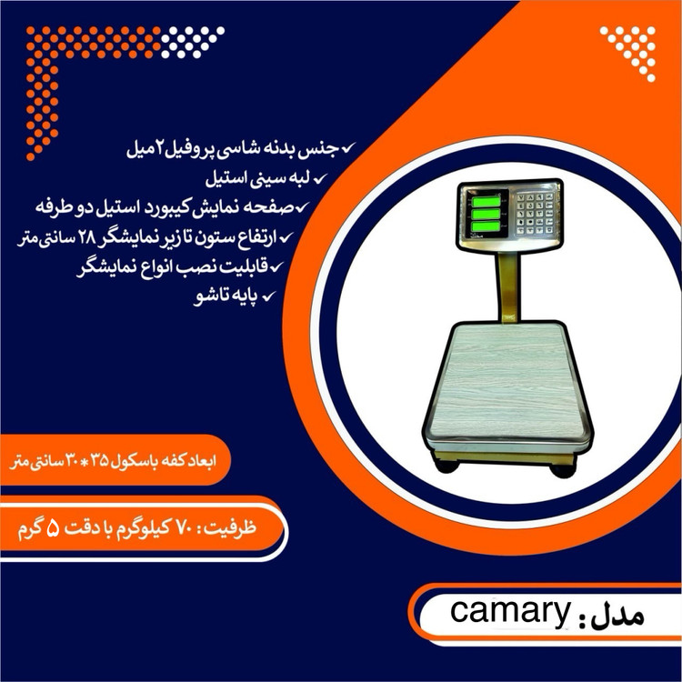 نس بدنه شاسي فلزي بسيار مقاوم سيني لبه دار استيل بسيار شيك داراي نمايشگر استيل دوطرفه به همراه كابل برق جهت شارژ دستگاه ارتفاع ستون تا زير نمايشگر حدود ٢٨ سانت قابليت خم شدن ( تا شدن ستون ) جهت حمل و نقل راحت تر
